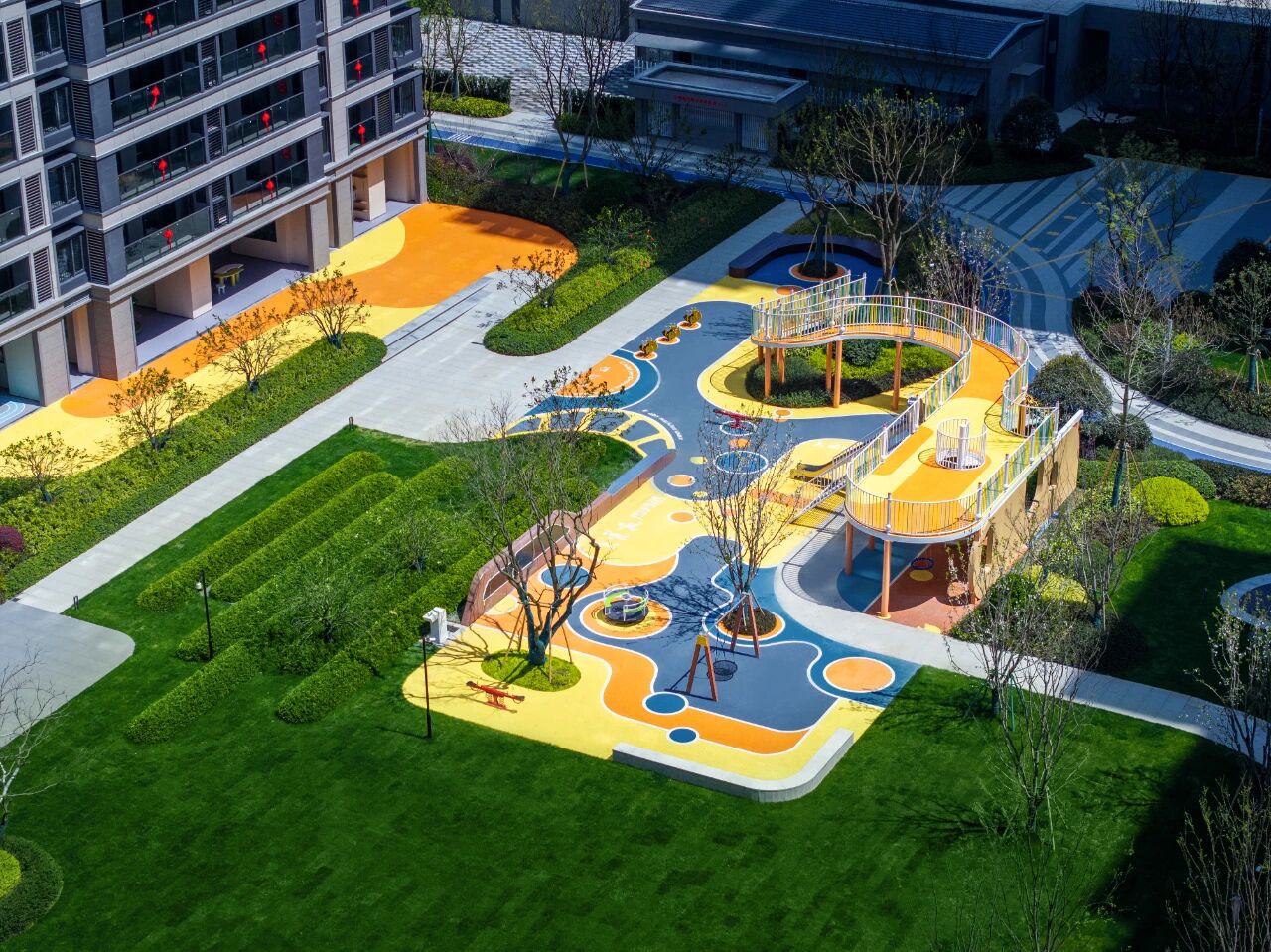 融入阳光草坪等共享空间,让孩子自由奔跑,长者静享时光,年轻人社交放松,实现“下楼即度假”的生活体验。