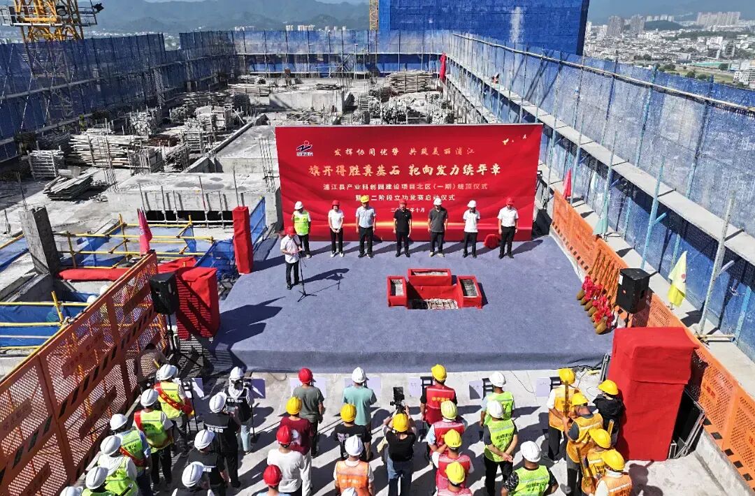 城投集团党委书记、董事长、总经理周康尧在致辞中表示,产业科创园是浦江推动产业升级、实现高质量发展的重要载体,是我县城市品位格调提升的一个重要标志,填补了我县楼宇经济的空白,北区(一期)工程的提前结顶,展现了“城投速度”,更体现了各参建单位的责任担当。