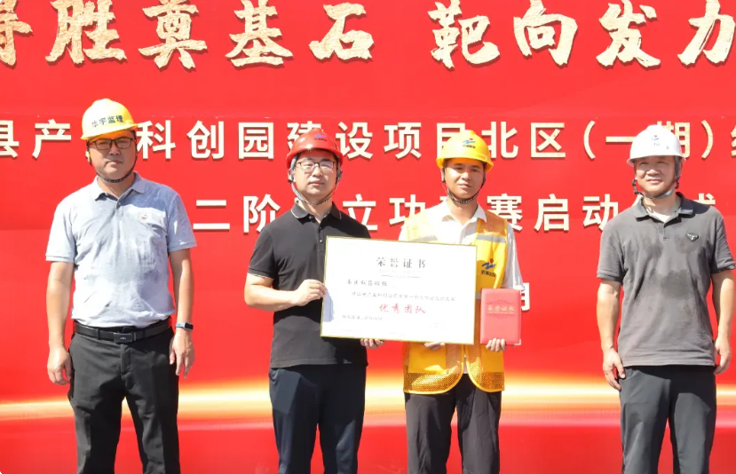 仪式现场,对第一阶段劳动立功竞赛优秀个人和团队进行了表彰,浙浦建设副总经理、总工程师华立原宣读了第二阶段立功竞赛活动方案,分包单位代表作了表态发言。