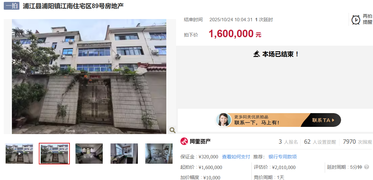 根据《浦江县不动产登记中心不动产登记状况》记载,拍卖对象已抵押,登记证明号浙(2021)浦江县不动产证明第 0010192号,抵押权利人浙江浦江农村商业银行股份有限公司。
