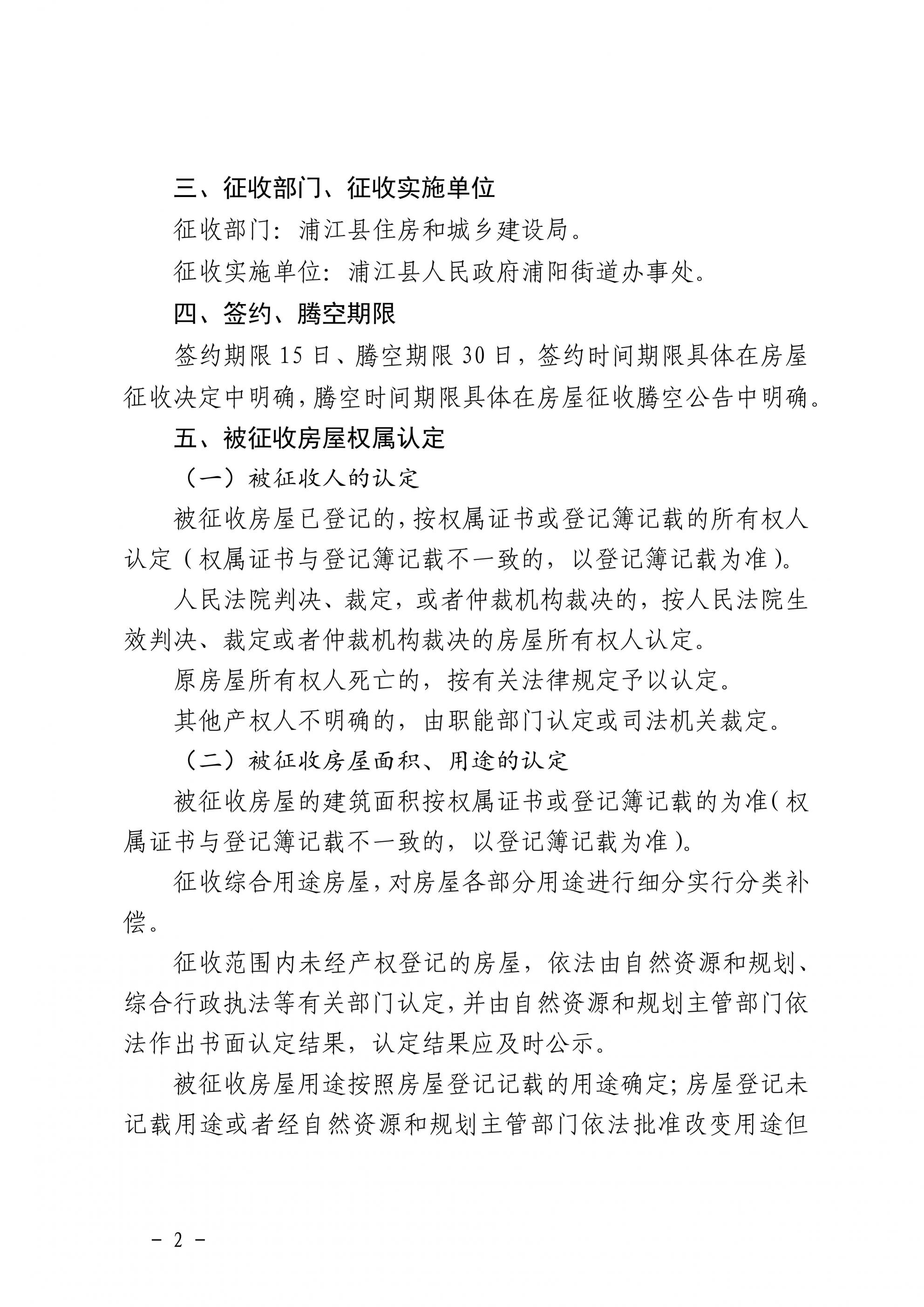 三、房屋征收实施单位:浦江县人民政府浦阳街道办事处