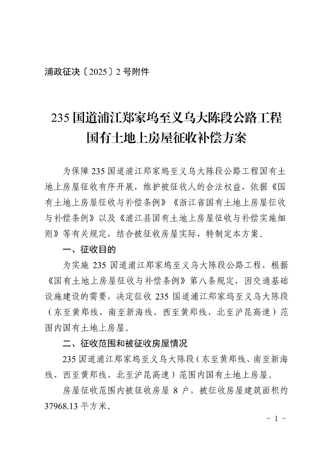 该区块房屋征收范围具体以235国道浦江郑家坞至义乌大陈段公路工程国有土地上房屋征收范围红线图为准。