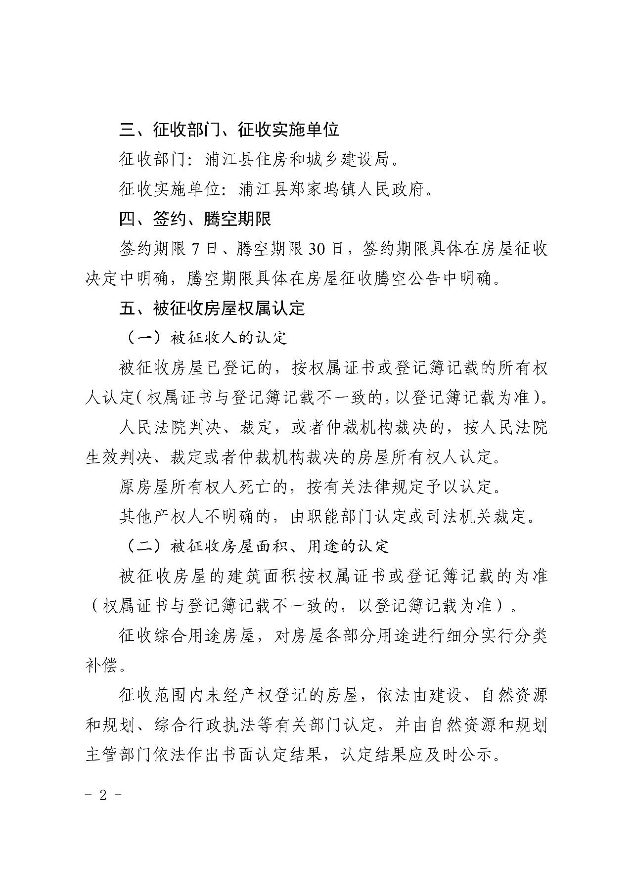 三、房屋征收实施单位:浦江县郑家坞镇人民政府。
