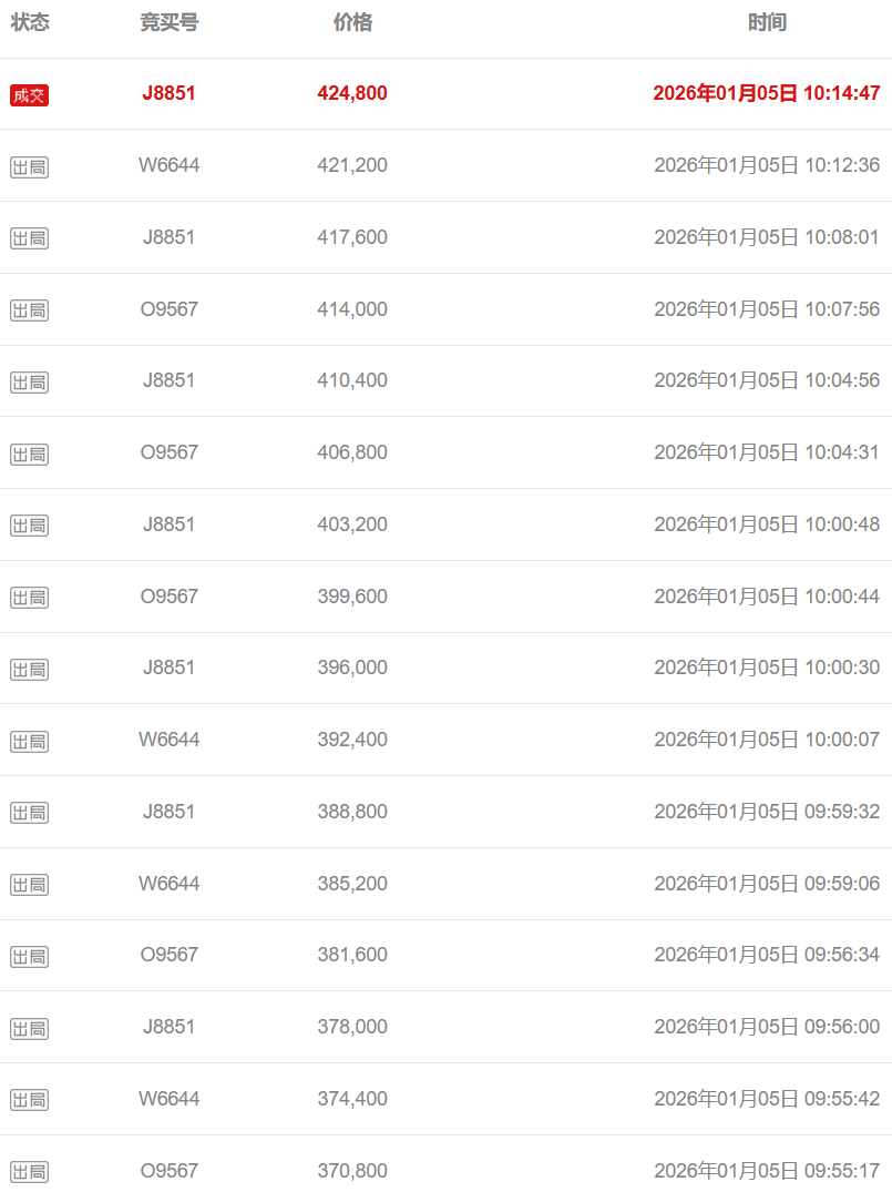 竞买记录: