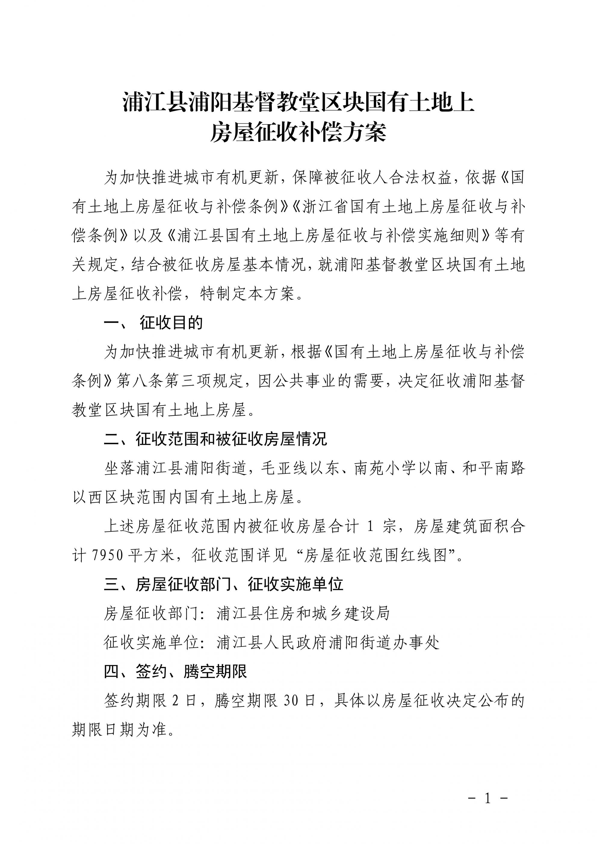依据《国有土地上房屋征收与补偿条例》《浙江省国有土地上房屋征收与补偿条例》等有关规定,本机关决定对浦江县浦阳基督教堂区块范围内国有土地上房屋实施征收: