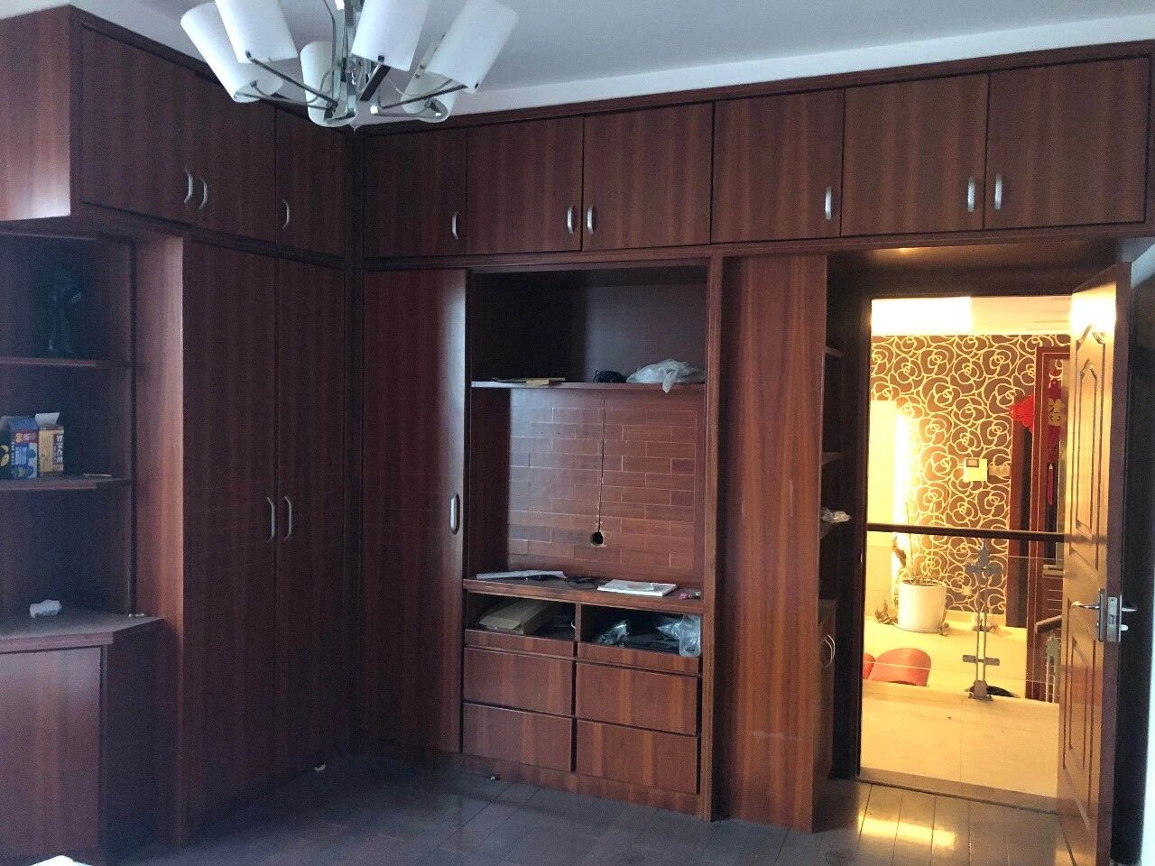 装饰装修:入户为防盗门,客餐厅地砖地面,涂料、墙纸墙面,天棚涂料,装饰背景墙,带固定柜;房间木地板地面,涂料、墙纸墙面,天棚涂料,带固定柜;厨房地砖地面,墙砖墙面,集成吊顶,带橱柜、吊柜;卫生间地砖地面,墙砖墙面,集成吊顶,带洗漱台、淋浴房、马桶等卫生洁具;阳台地砖地面,墙砖墙面,天棚涂料,带洗衣台;断桥铝窗,木门、合金玻璃门等。房屋装饰装修等描述与现状不完全一致的或其他未述及部分,以现状实物为准。