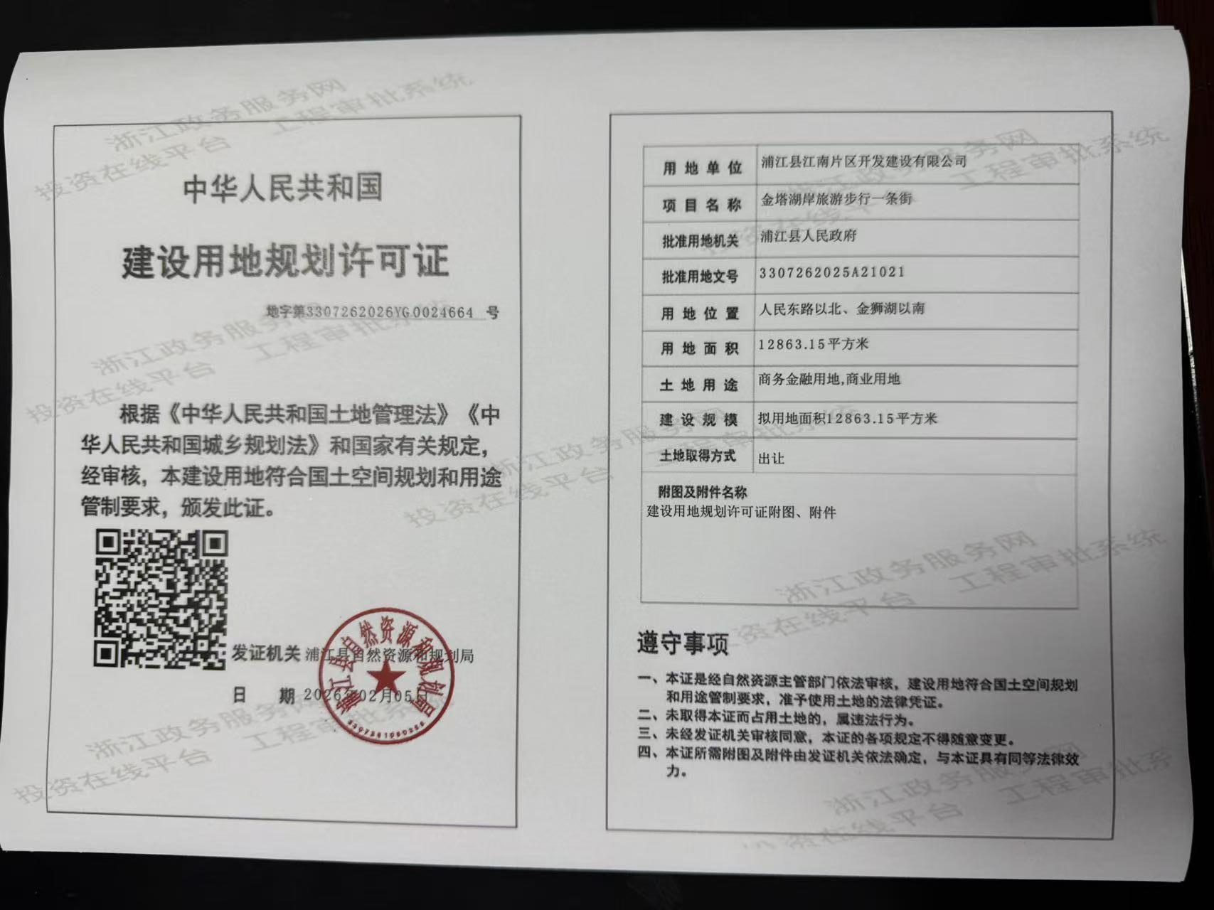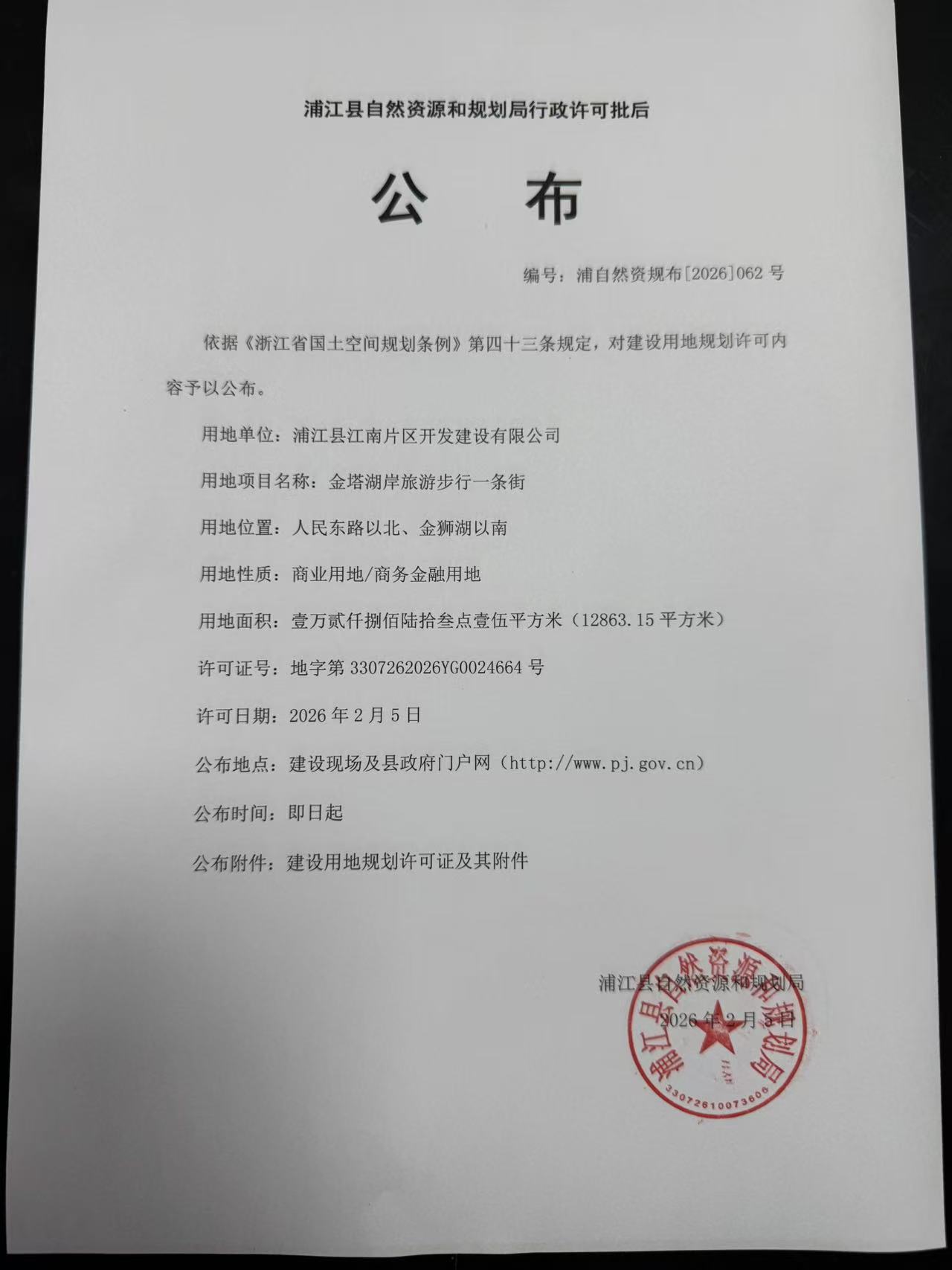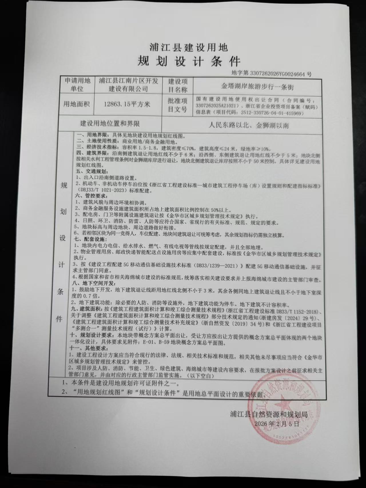 金塔湖岸旅游步行一条街建设用地规划许可批后公布