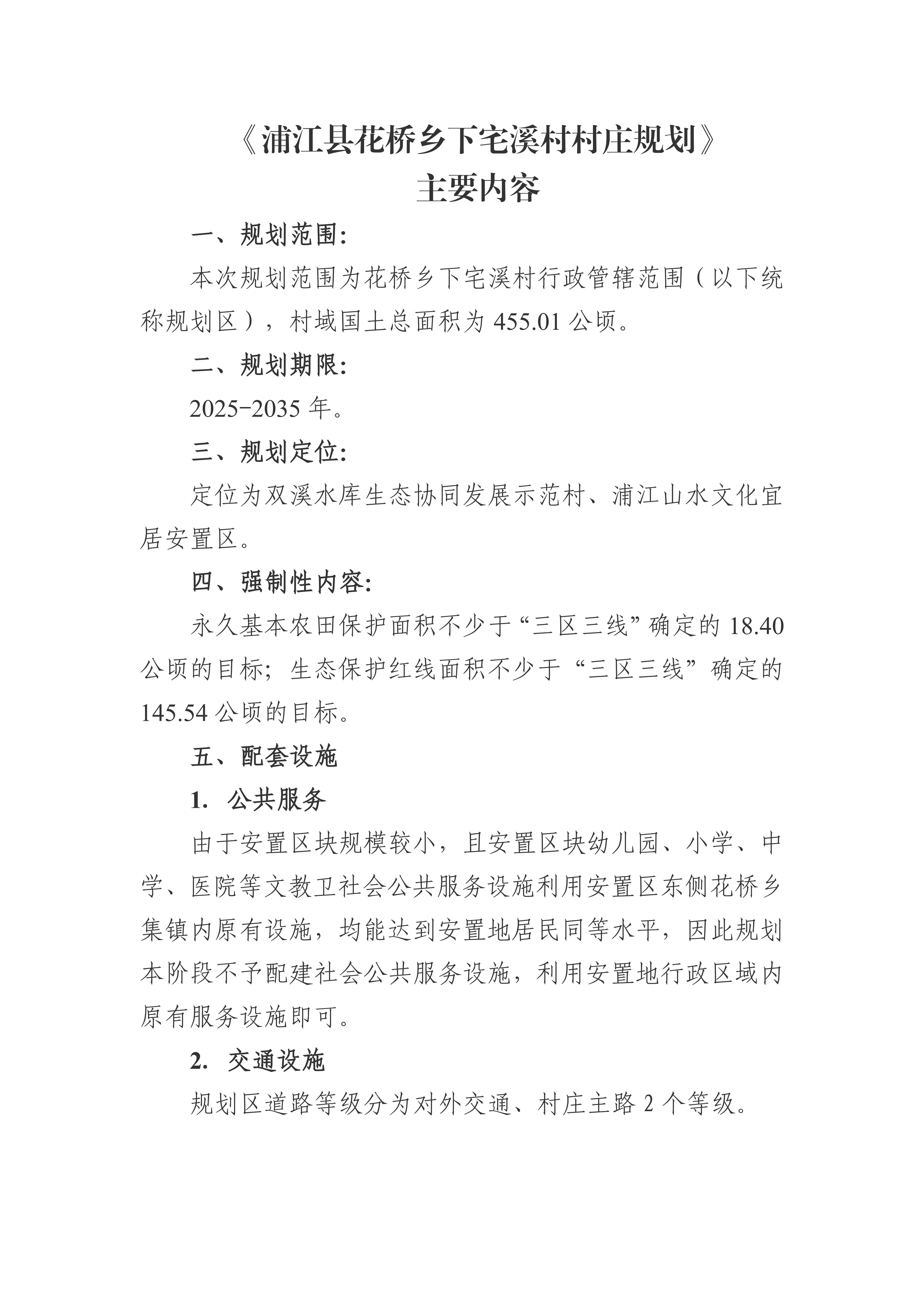 为规范和管控浦江县花桥乡下宅溪村土地利用、农民建房、保护和修复村庄生态环境、土地资源、重点项目推进。花桥乡人民政府组织编制了《浦江县花桥乡下宅溪村村庄规划》。根据《中华人民共和国城乡规划法》、《浙江省城乡规划条例》等有关法律法规的要求,现将村庄规划草案予以公告,广泛征求公众意见。